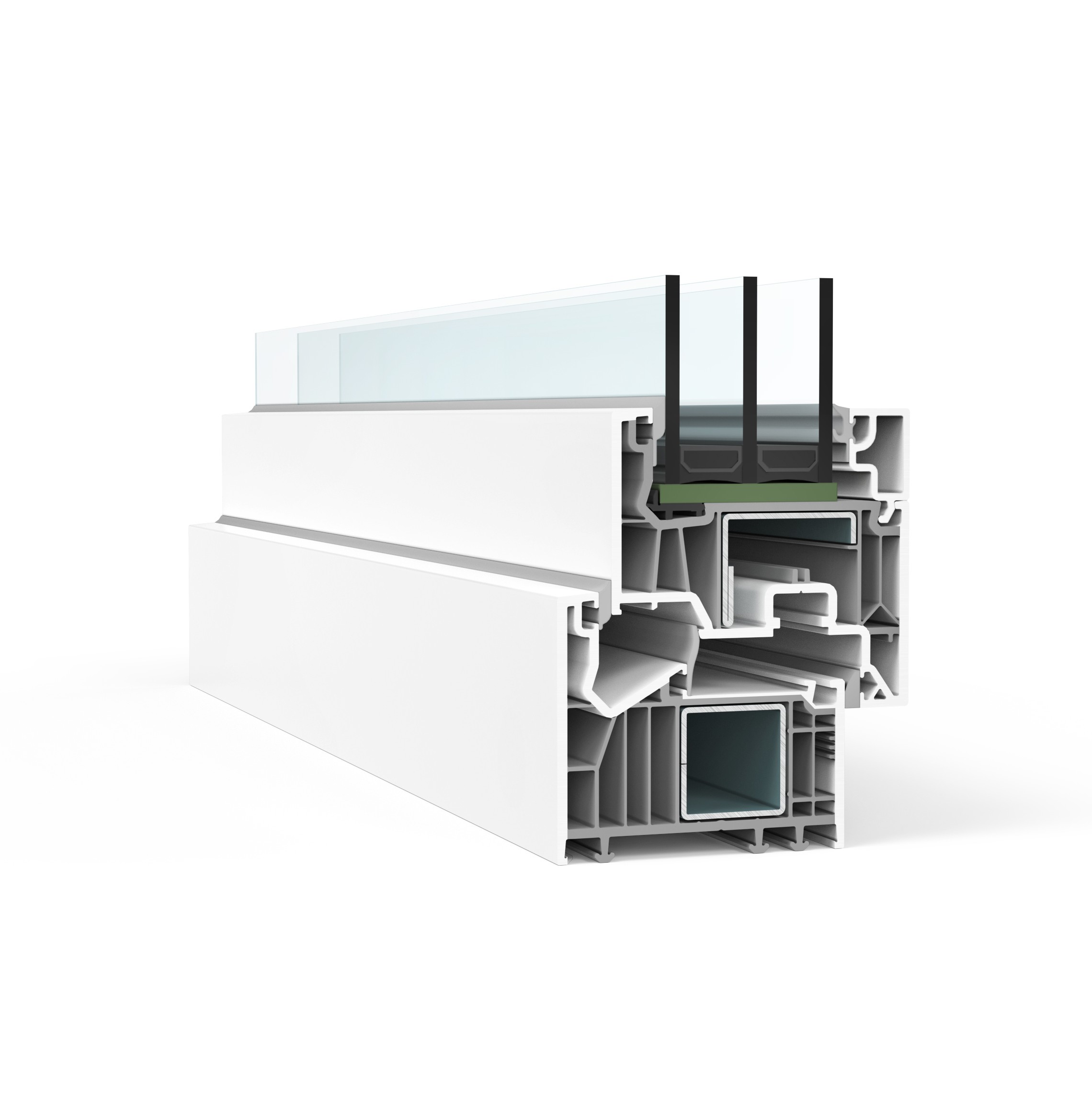 We gebruiken standaard gerecycleerd materiaal in de profielkern. Op die manier hebben we minder nieuw pvc nodig, verbruiken we minder fossiele grondstoffen en verlagen we de koolstofvoetafdruk van de profielen in vergelijking met systemen zonder gerecycleerd materiaal. De bewezen klasse A-kwaliteit conform DIN EN 12608-1 staat bovendien garant voor maximale stabiliteit, een betrouwbare werking en een lange levensduur. Veelzijdig inzetbaar – efficiënt te verwerken